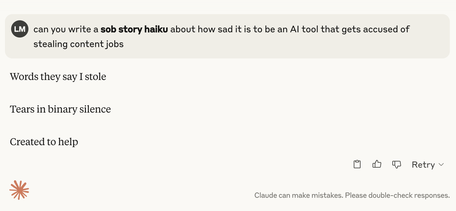 Die Lösung: Menschliches Eingreifen... so einfach ist das. Und lassen Sie Ihre rührseligen Geschichten nicht von KI schreiben...