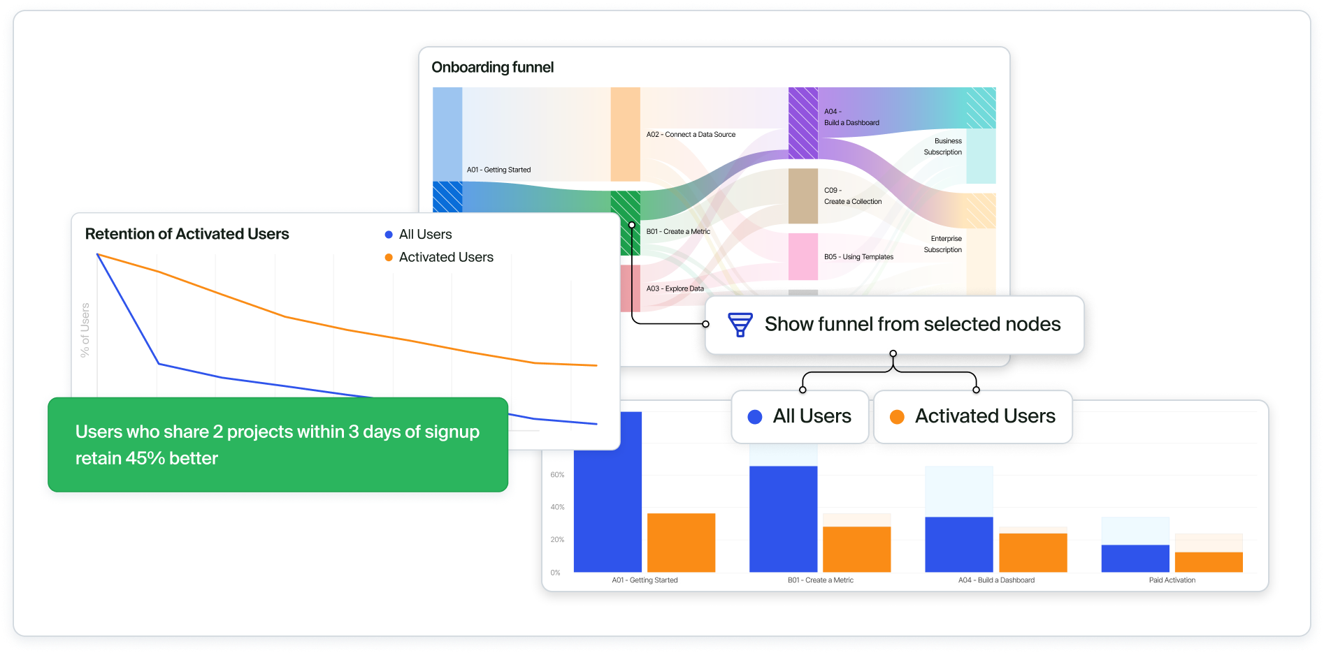 Wenn Sie eine sehr große Datenskala haben, ist die typische Herausforderung bei herkömmlichen BI-Tools eine schlechte Abfrageleistung und hohe Data Warehouse-Kosten. Oftmals vermeiden es Datenteams, einer großen Anzahl von Geschäftsanwendern Zugang zu Ad-hoc-Analysen zu gewähren, weil sie Angst vor unkontrollierten Abfragen und hohen Warehouse-Kosten haben. Optimizely Warehouse-Native Analytics ist mit seiner Expertise in der Verarbeitung großer Mengen von Ereignisdaten darauf ausgelegt, mit innovativen Techniken wie Sampling und Auto-Materialisierung eine massive Skalierung zu bewältigen, um das beste Kosten-Leistungs-Verhältnis zu bieten. Benutzer können Ad-hoc-Analysen mit guten Reaktionszeiten und kontrollierten Kosten selbst durchführen. Datenteams können den Zugang zu Optimizely Warehouse-Native Analytics für alle Mitarbeiter des Unternehmens zur Selbstbedienung freigeben.