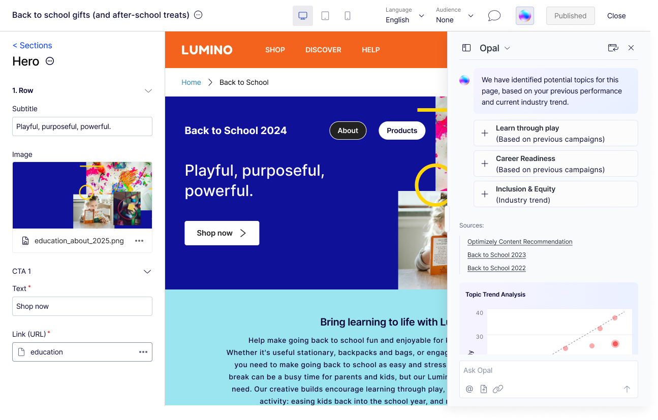 Optimizely CMS-Benutzer können mit Opal Aufgaben automatisieren, so dass sich die Ersteller von Inhalten auf den Aufbau großartiger Erlebnisse für Kunden konzentrieren können.