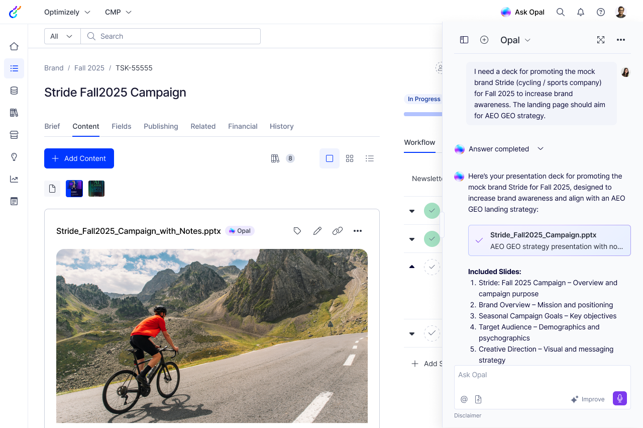 We're prioritizing some impactful tools that will give Opal's AI agents the ability to do more on your behalf within Optimizely CMP, including support for:​