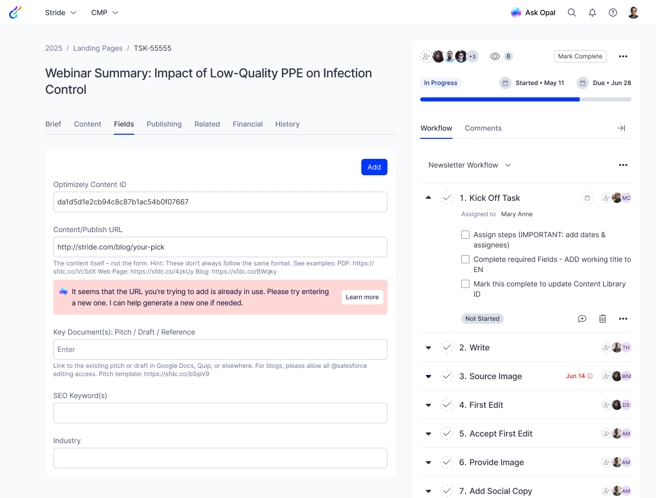 The Work Request Agent will automatically convert work request form data into new Campaigns or Tasks. This eliminates manual data entry, saving you time and ensuring all tasks and campaigns are accurately created and mapped within CMP.​